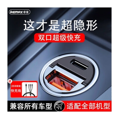 • REMAX【隐形快充】车载充电器52.5w点烟器一拖二三双口快充汽车转换头