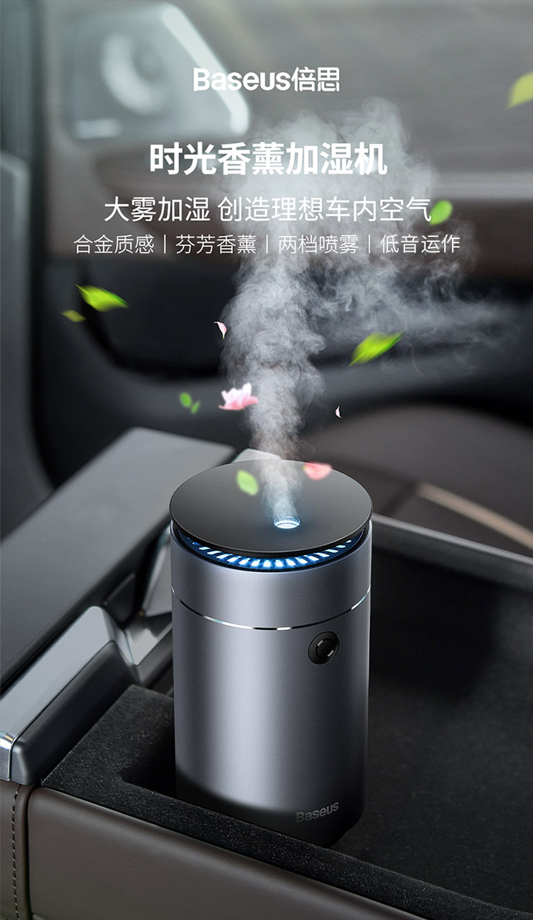 倍思(Baseus) 车载加湿器 补水加湿器喷雾香薰机室内空调房加湿清新器带氛围灯车家两用迷你 深空灰
