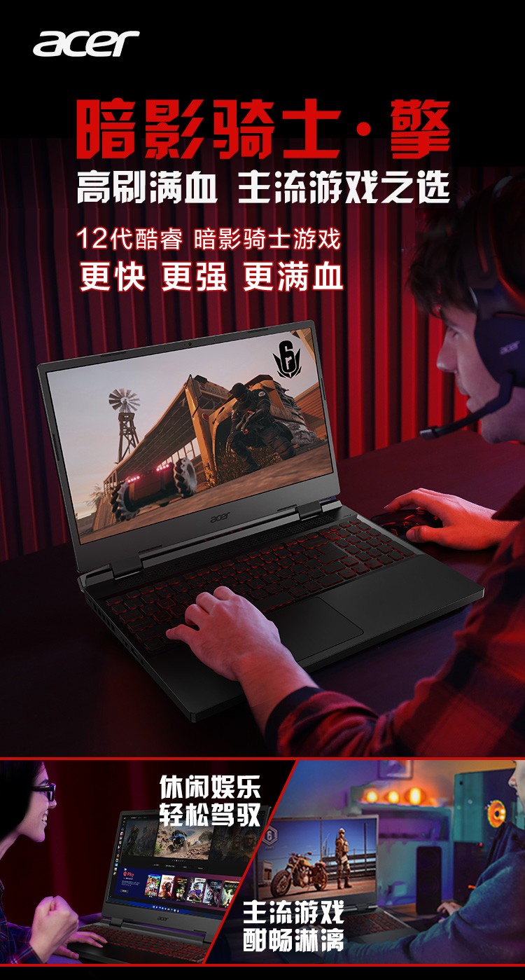 商品名称:宏碁(acer) 暗影骑士·擎笔记本电脑 15.6英寸电竞屏512G硬盘高色域游戏本独立显卡 新i5-12500HRTX30606G独显